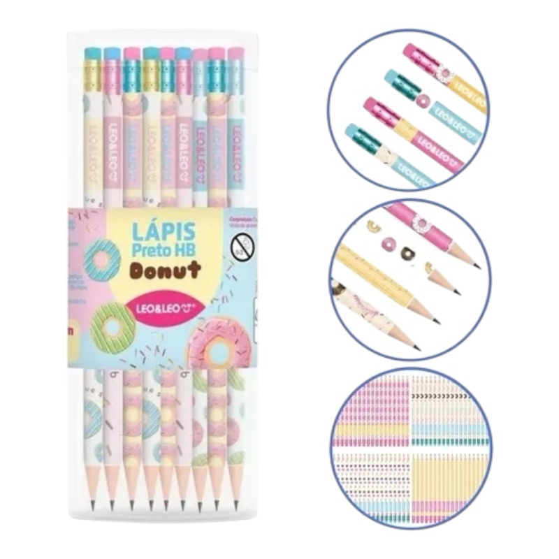 Lápis Preto HB Donut Leo&Leo Sortido - Conforto e Qualidade para Escritório e Estudo