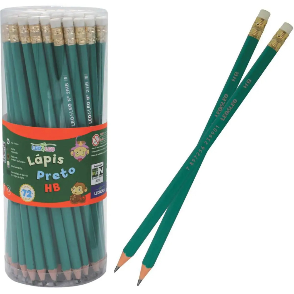 Lápis Preto Com Borracha Leo&Leo N2 HB Sextavado Resina Com 72 Unidades