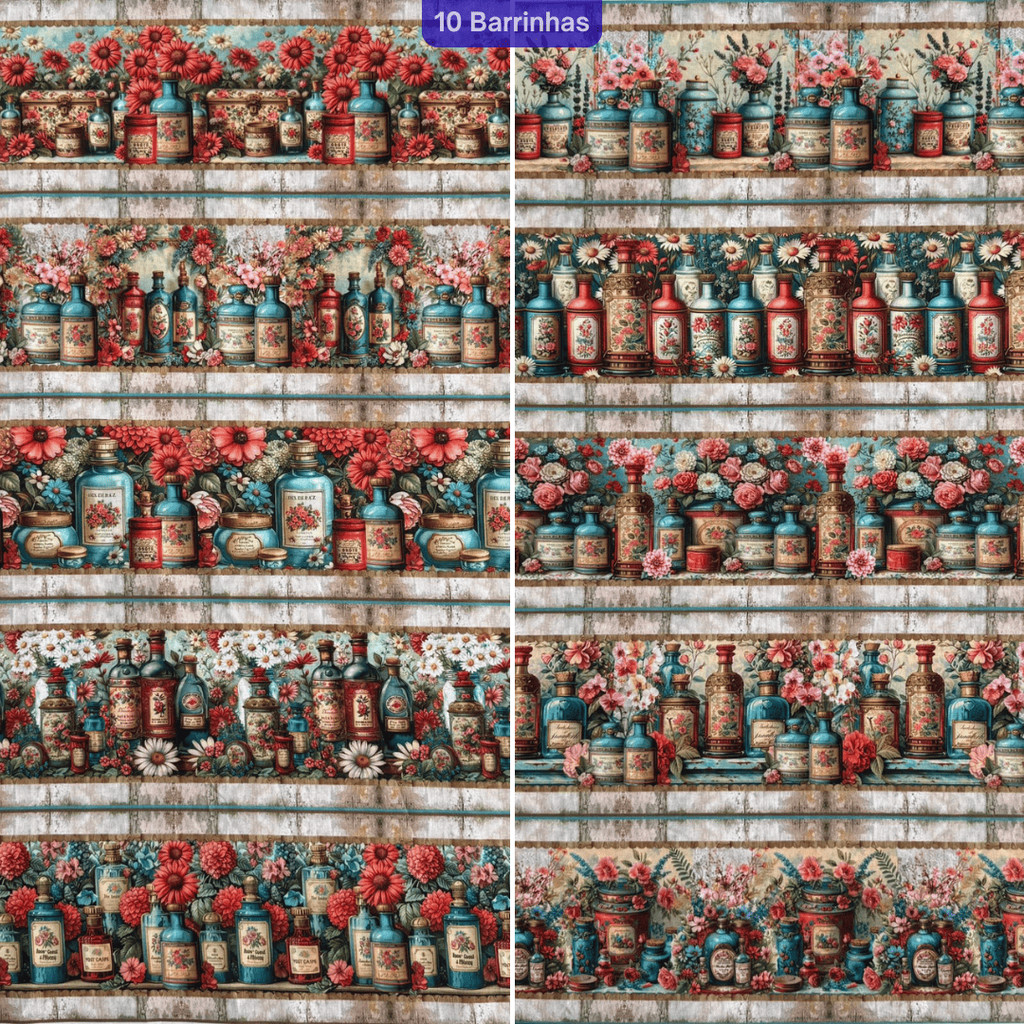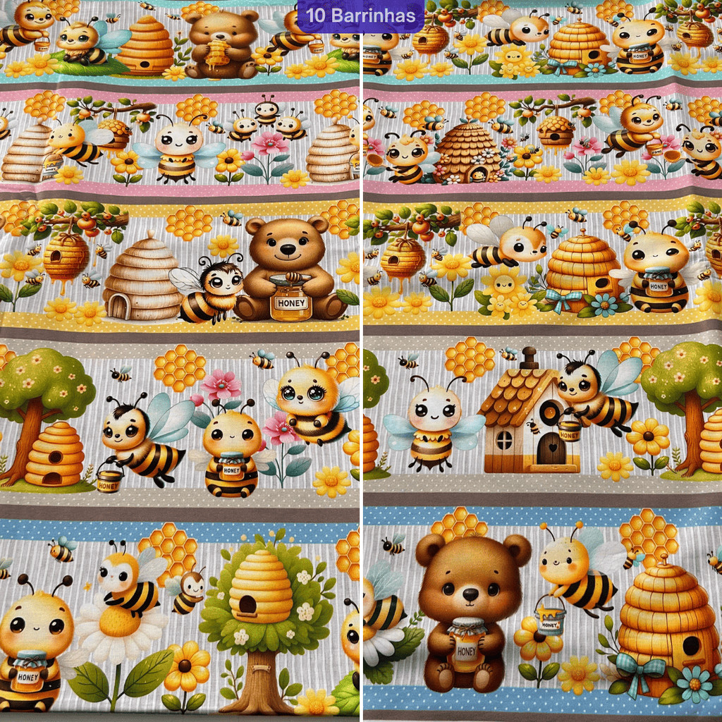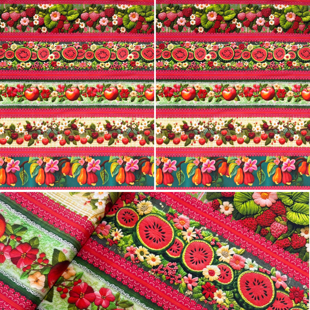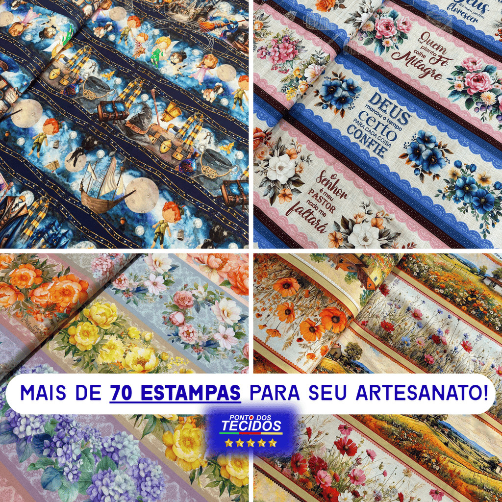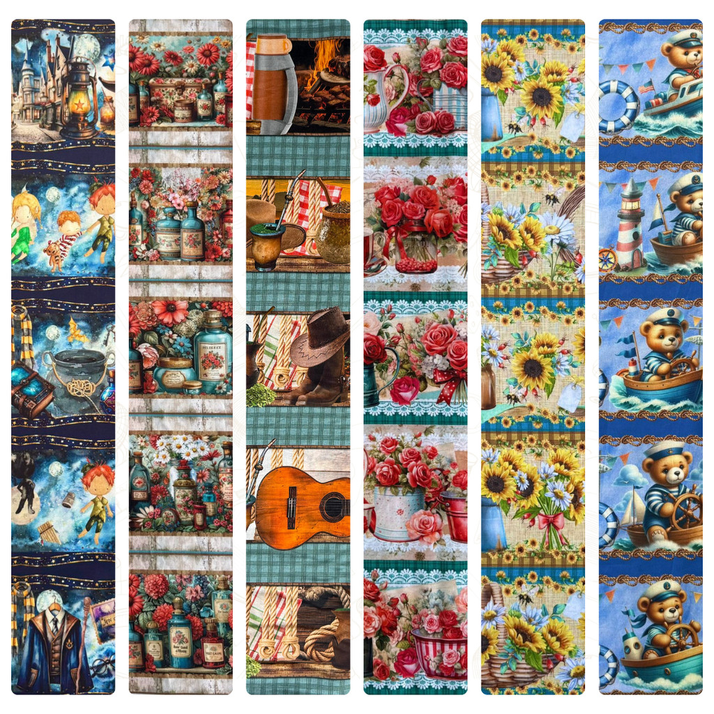 Tricoline Barrada Digital para Patchwork e Artesanato - Estampas Variadas - 100% Algodão