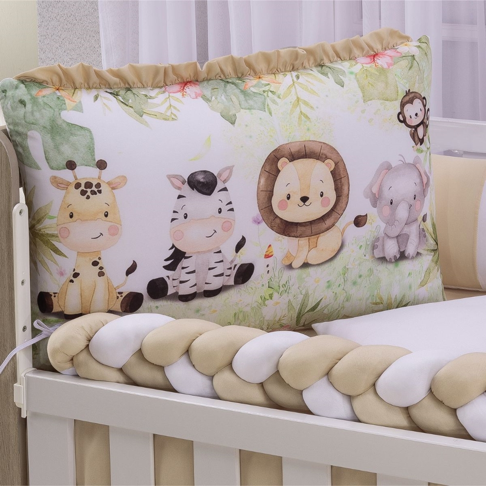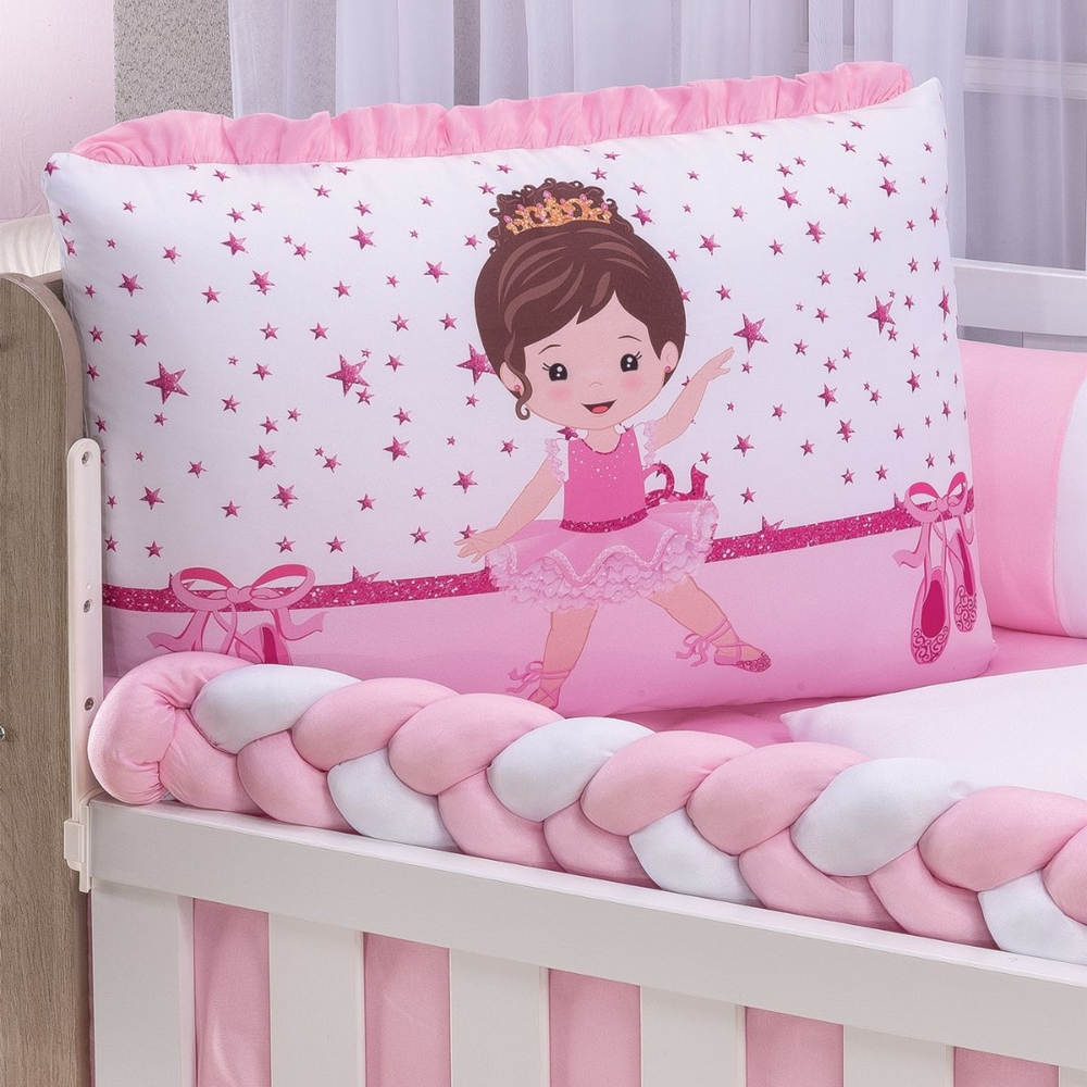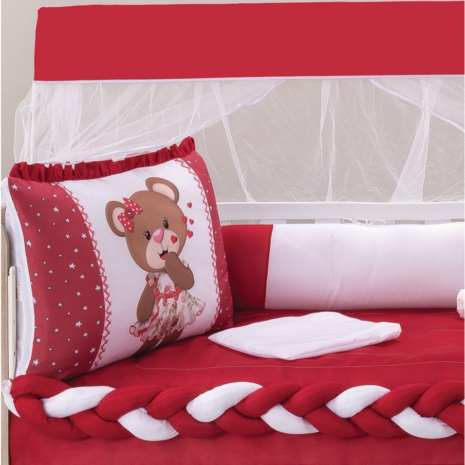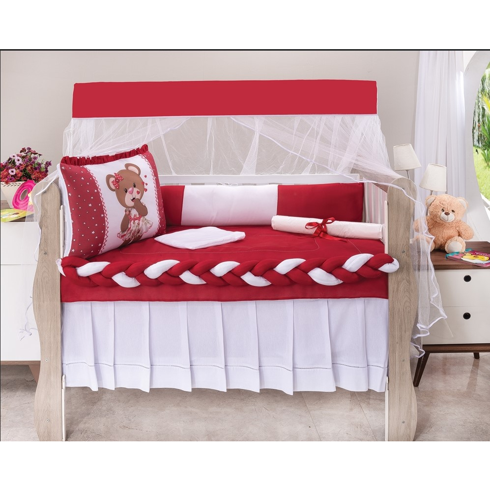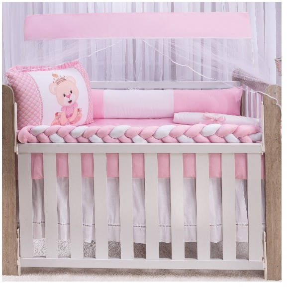 Kit Berço Americano Manu 10 Peças com Trança e Mosquiteiro