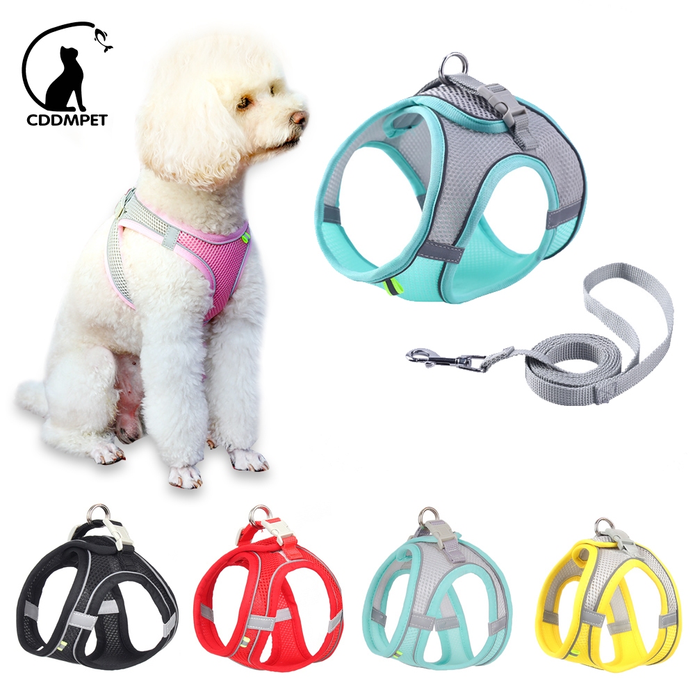 Coleira Peitoral Cachorro Pequeno Malha De Náilon Reflexiva Respirável Colete Com Guia