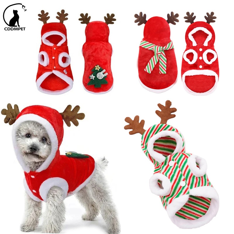 Roupas Para Cães De Natal Casaco Pequeno Gatos E Cachorro Com Capuz De Lã Animais De Estimação Colete