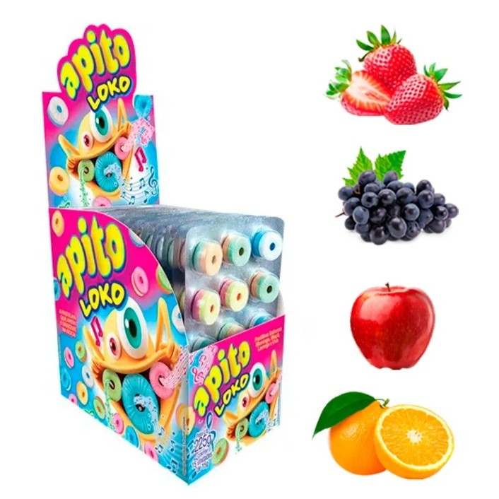 Apito Loko Pastilha Morango Maçã Laranja Uva Que Apita 15un