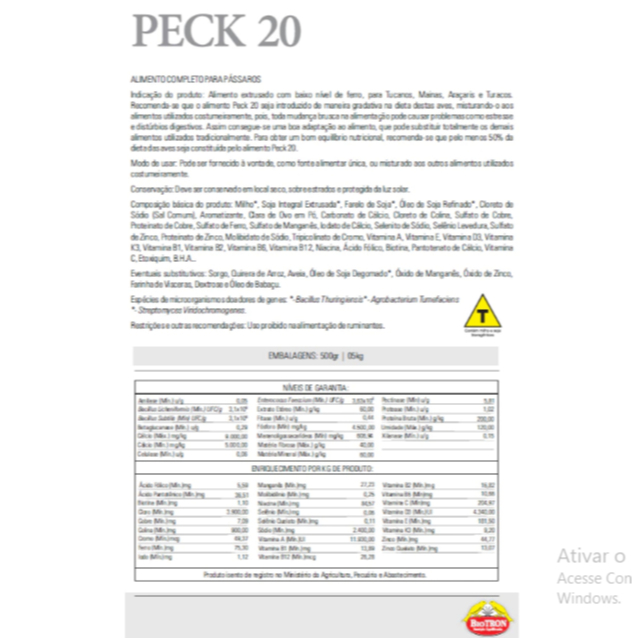 Biotron Peck 20 Alimento Extrusado Completo para Tucanos, Turacos, Mainá e Araçaris 5kg