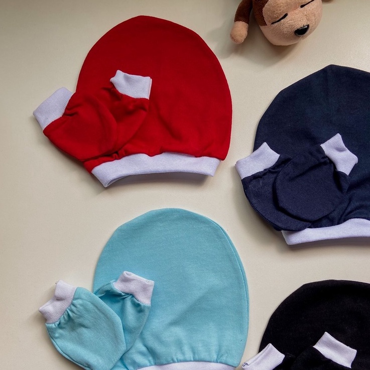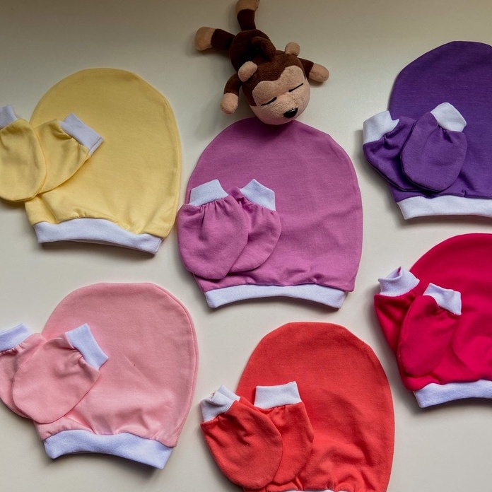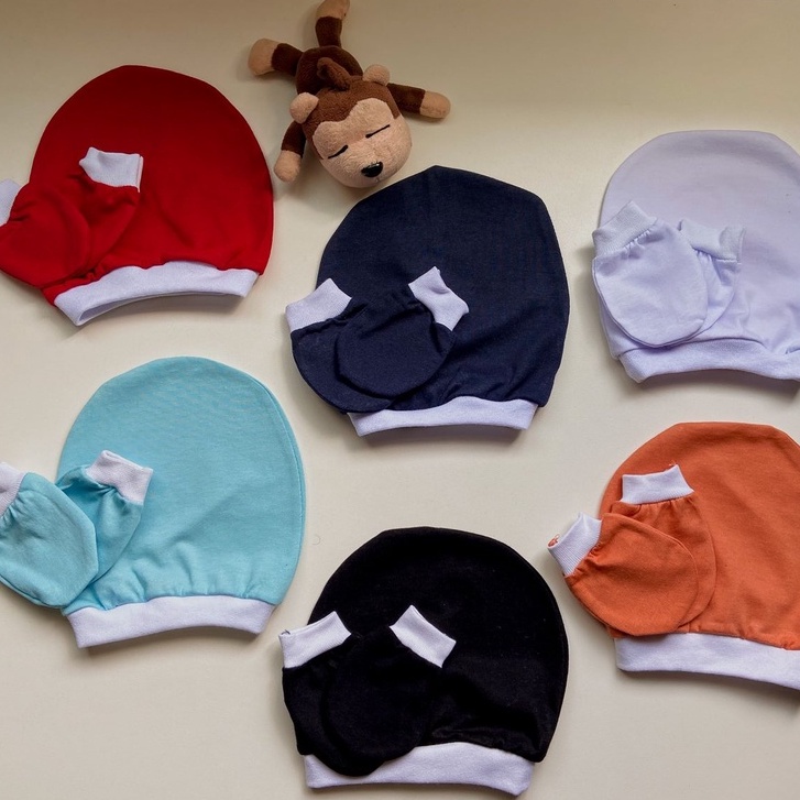 Kit 3 Touca + 3 luva de bebê luvinha bebê 100% algodão.