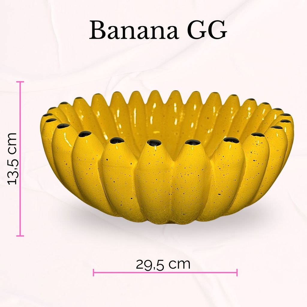 Fruteira Banana em Cerâmica Amarela Grande Decoração Centro de Mesa Porta Frutas