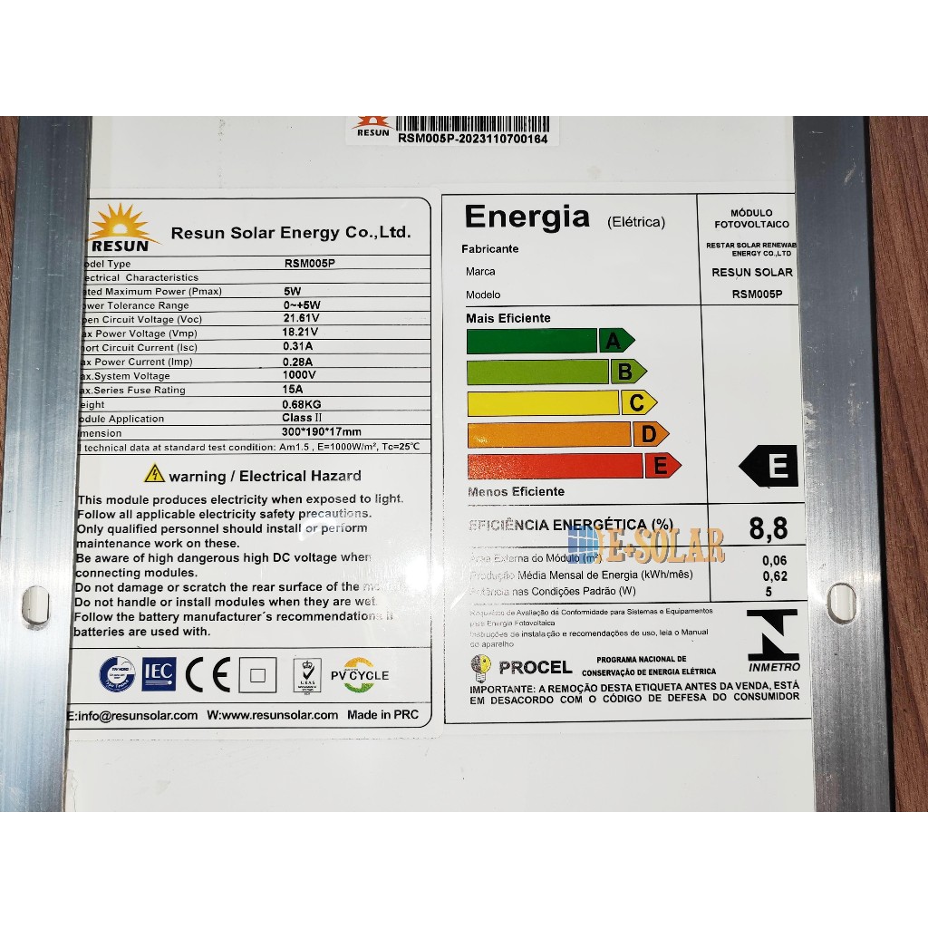 Painel Placa Solar Fotovoltaica 5w Inmetro RESUN + controlador de carga lcd