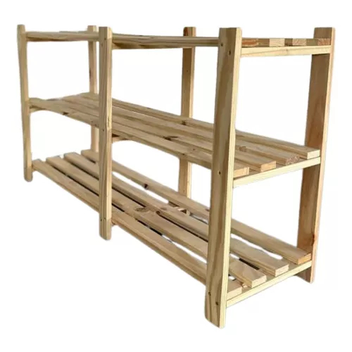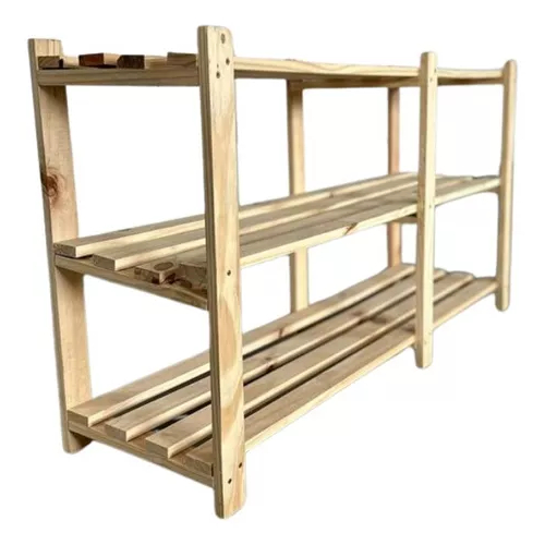 Estante Baixa Rack De Madeira Pinus Multiuso 3 Prateleiras