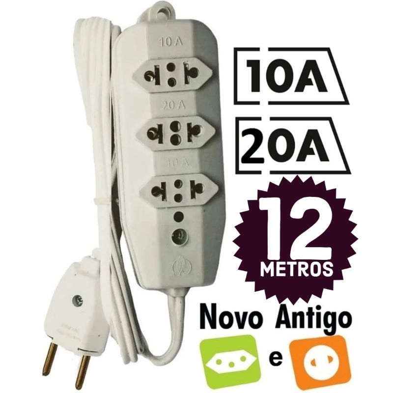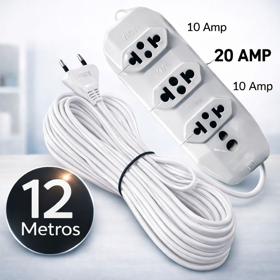 Extensão elétrica Reforçada 12 metros com 3 tomadas fio 2,5 mm