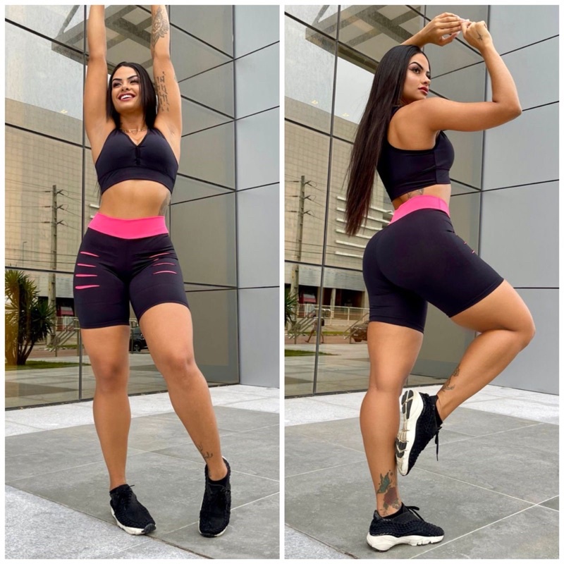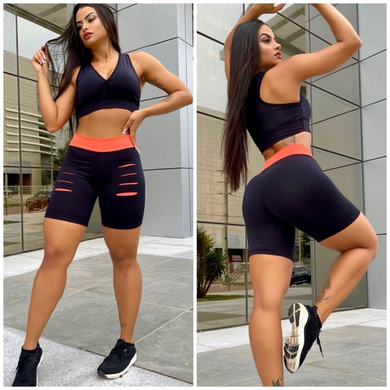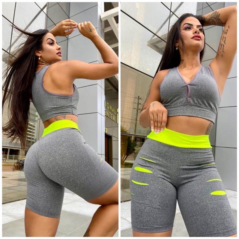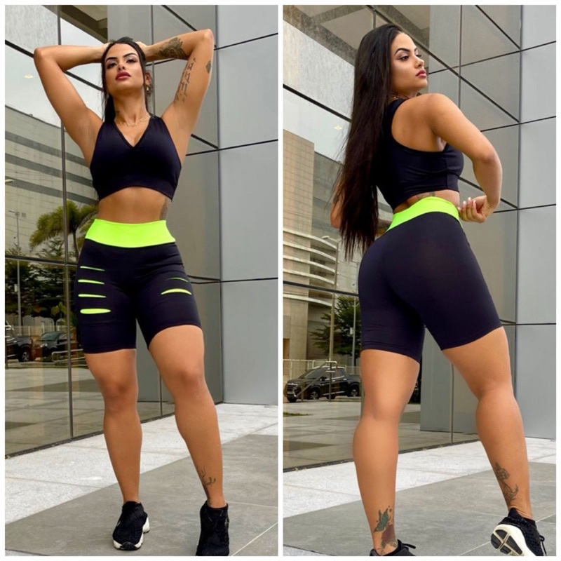 short ciclista meia coxa Suplex detalhes neon mais top nadador academia treino