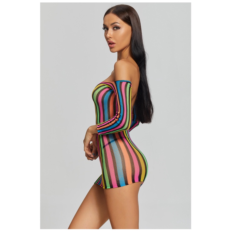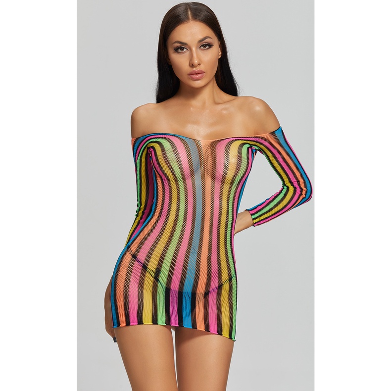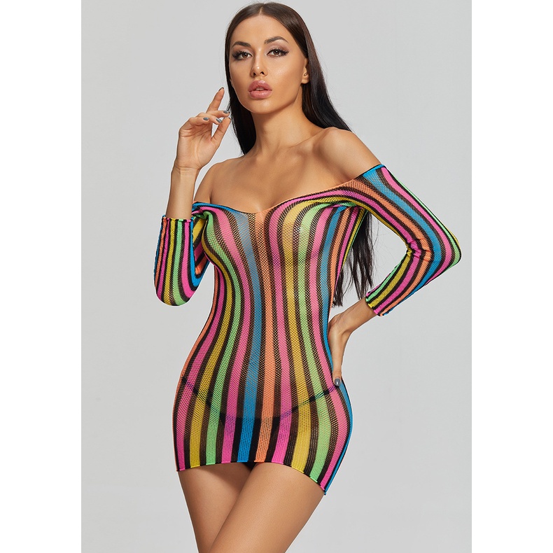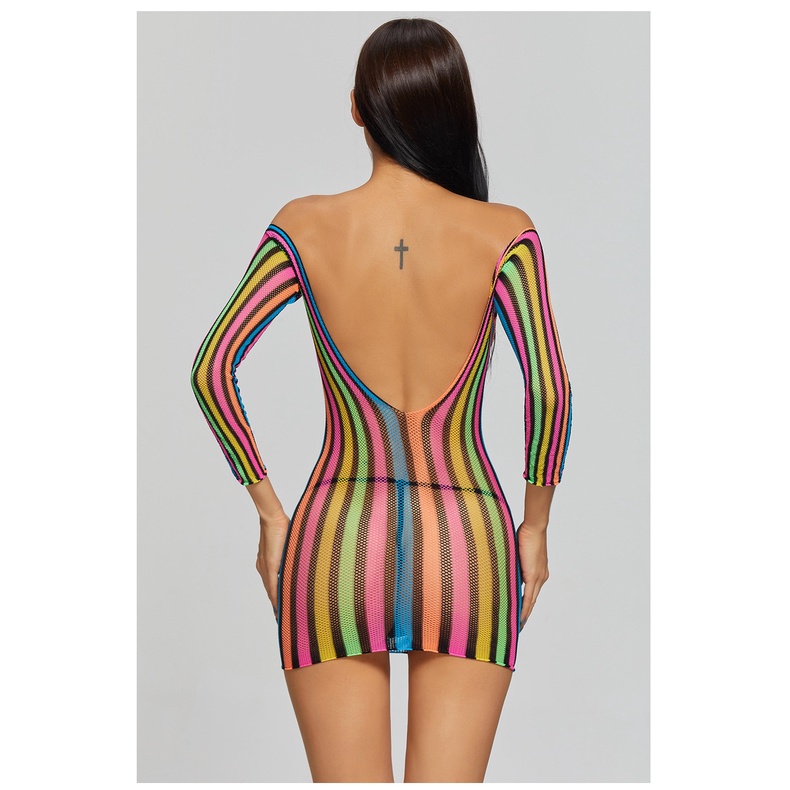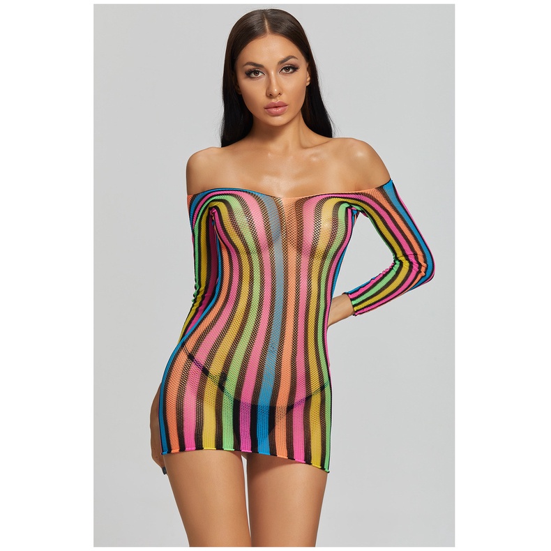 Pijama Americano Sexy Colorido Manga Longa Nádegas Uma Peça Rede Roupas Uniforme Tentação Saia Curta 8919