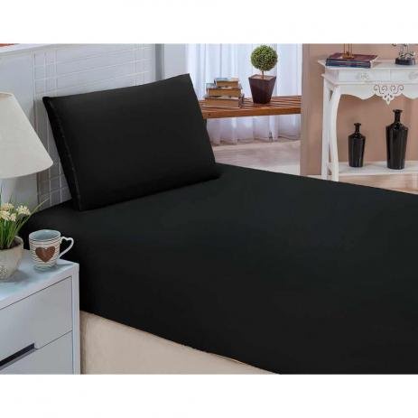 Jogo de Cama Solteiro Lençol Solteiro Padrão 2 Peças 170 Fios Com Elástico - Preto
