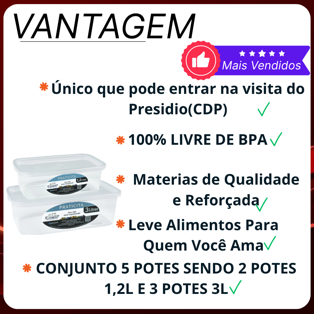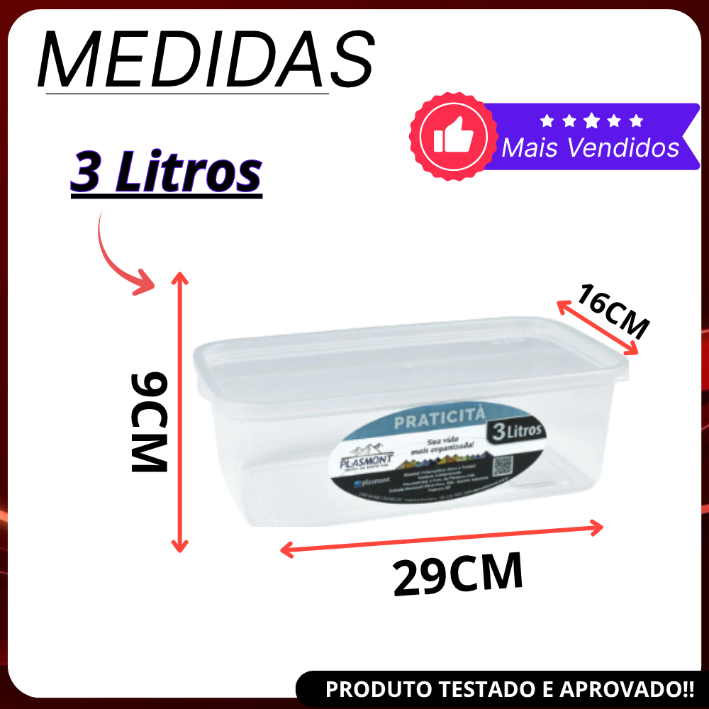 Kit 2 Potes PRESIDIO Transparente 1,2 L E 3,0 L Retangular