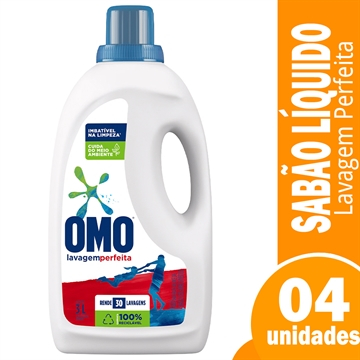 Sabão Líquido Omo Lava Roupa Lavagem Perfeita 3L - Embalagem com 4 Unidades