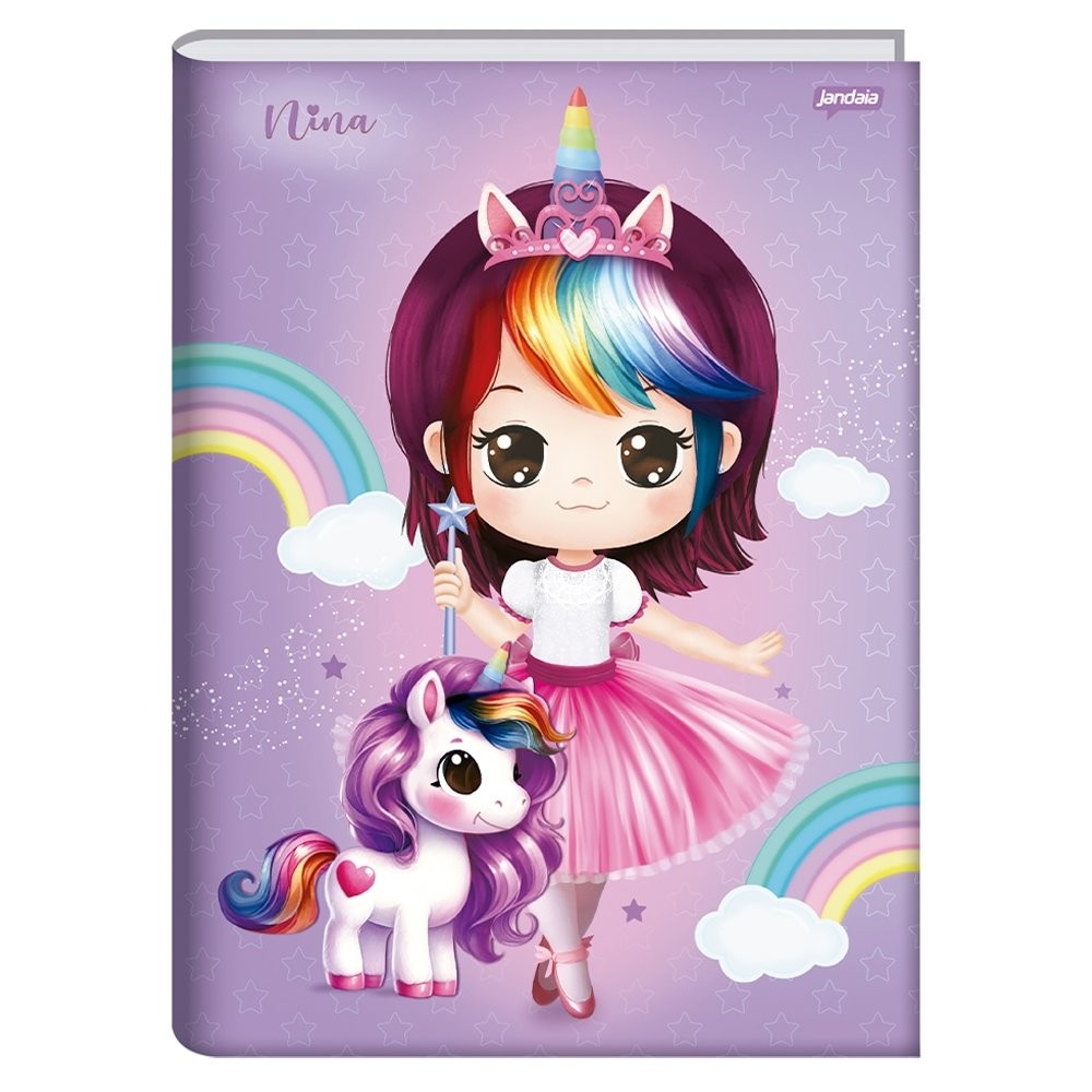 Caderno Costurado Jandaia Universitário Capa Dura Nina 80 Folhas - Embalagem com 5 Unidades (Sortidos)