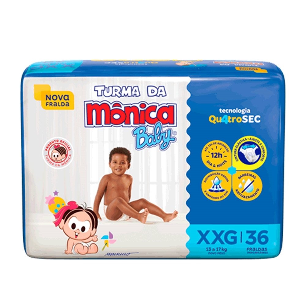 Fralda Descartável Turma da Mônica Tamanho XXG - 4 Pacotes com 36 Fraldas - Total 144 Tiras