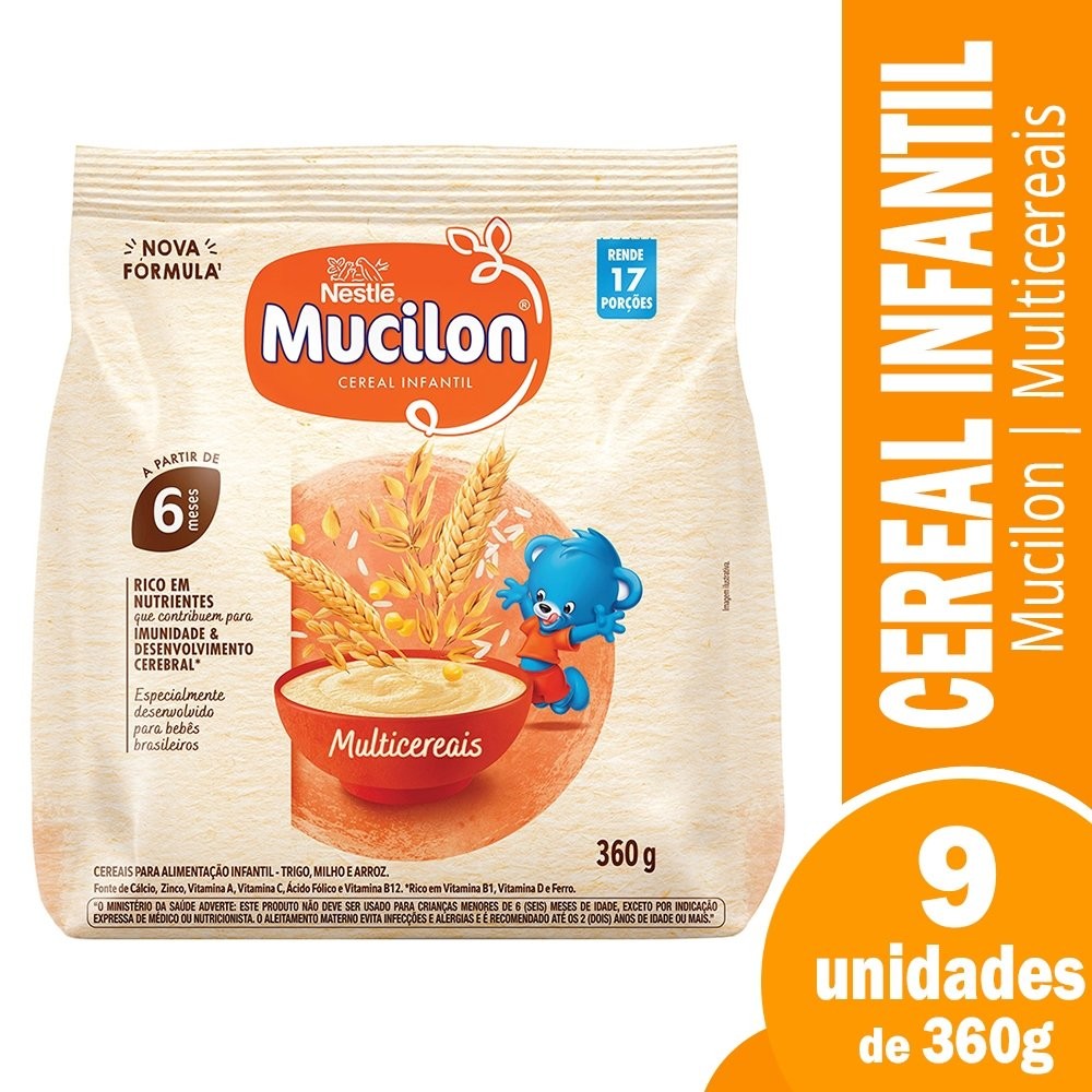 Cereal Infantil Mucilon de Cereais 360g - Embalagem com 9 Unidades