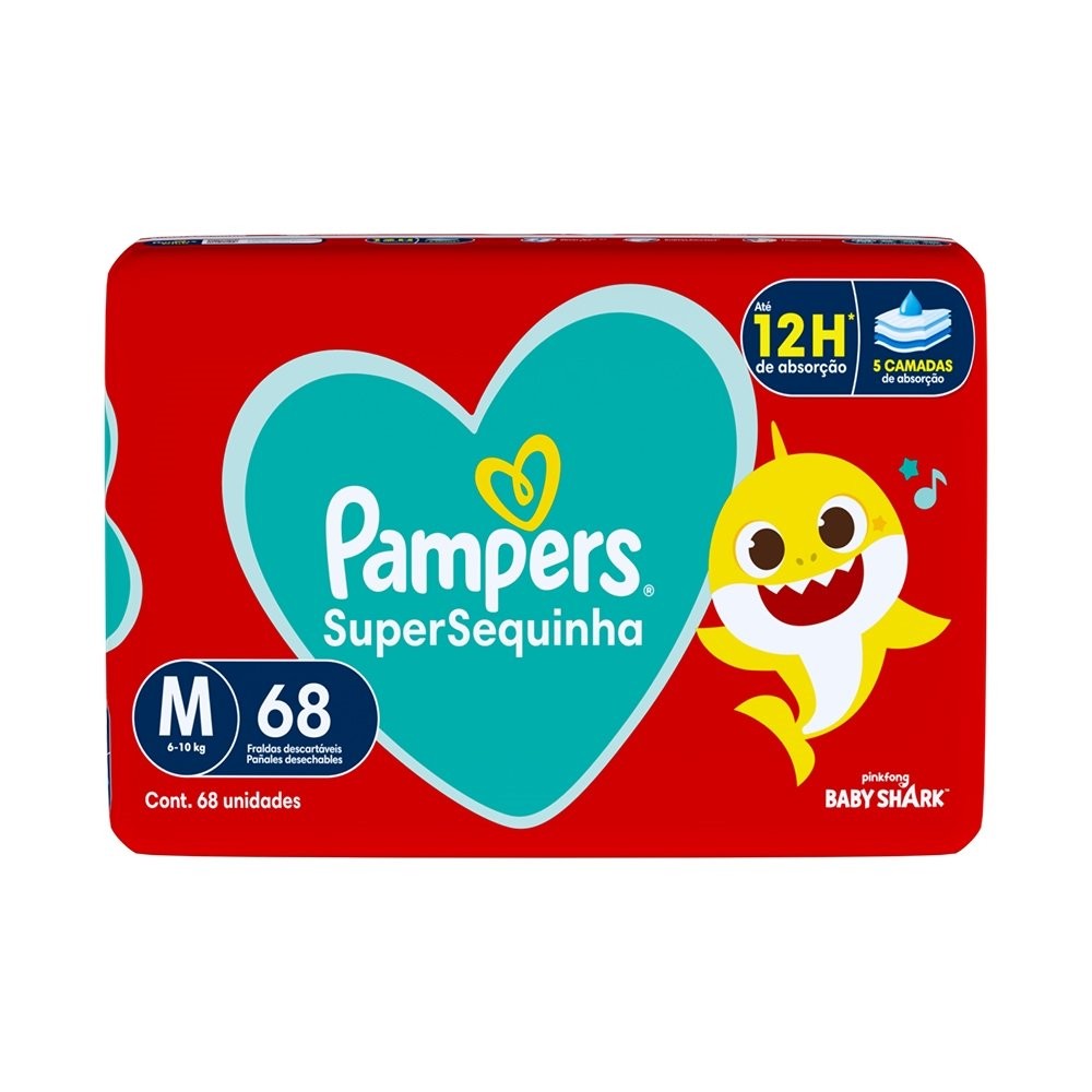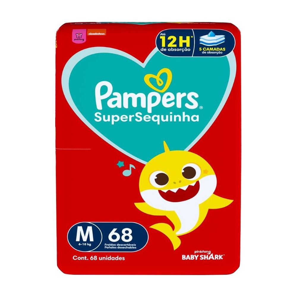Fralda Descartável Pampers Supersequinha Tamanho M - 4 Pacotes com 68 Fraldas - Total 272 Tiras