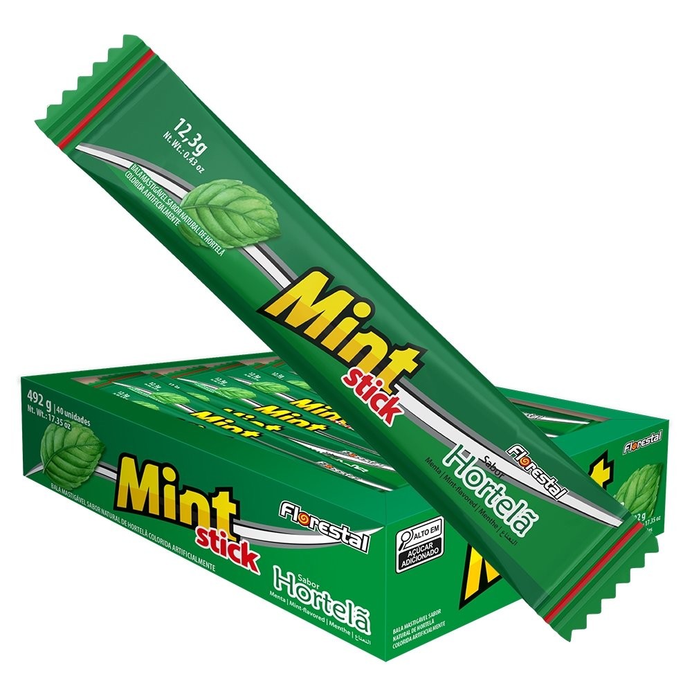 Bala Florestal Zolle Stick Mint Hortelã 12,3g - Embalagem com 40 Unidades