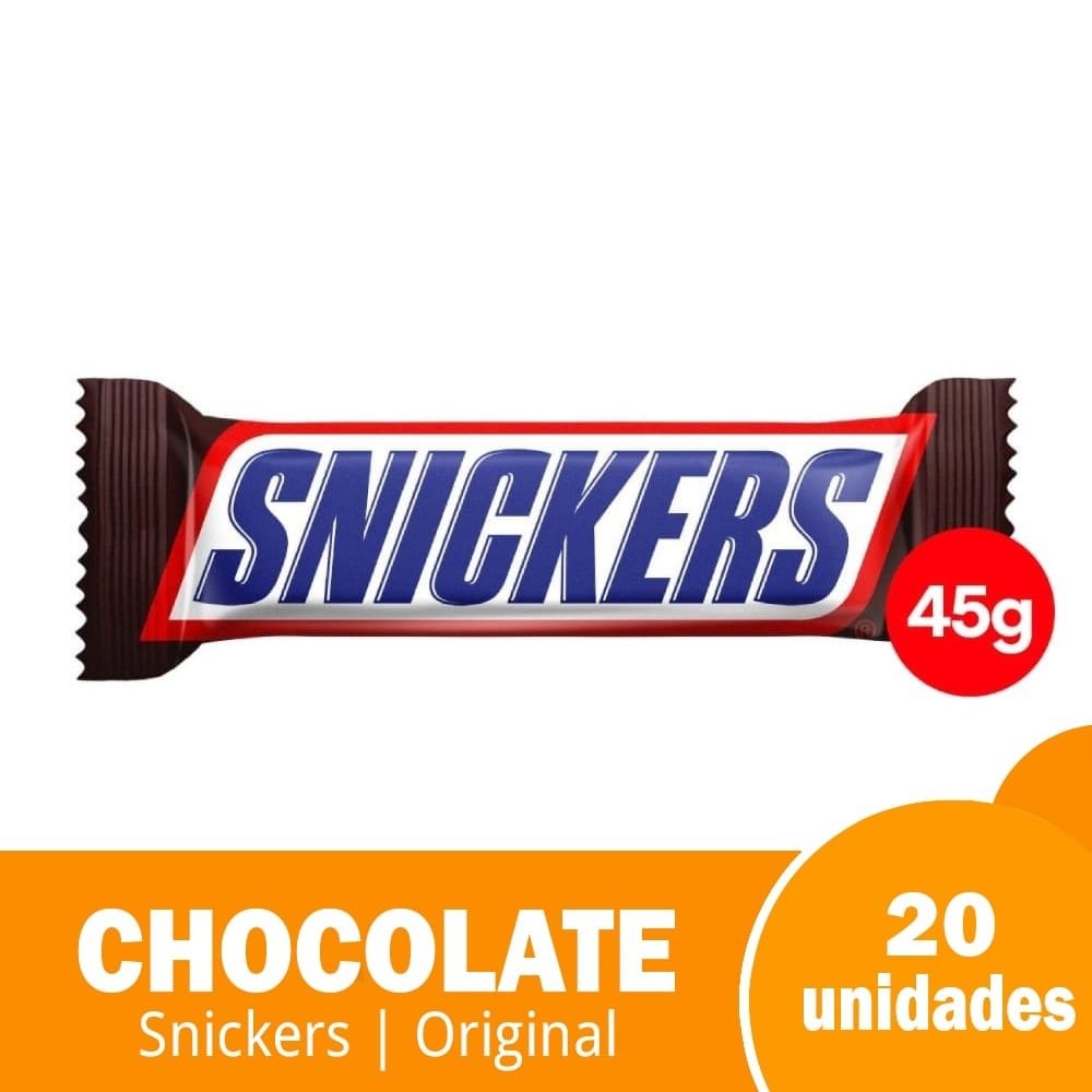 Chocolate Snickers Original 45g - Embalagem com 20 Unidades