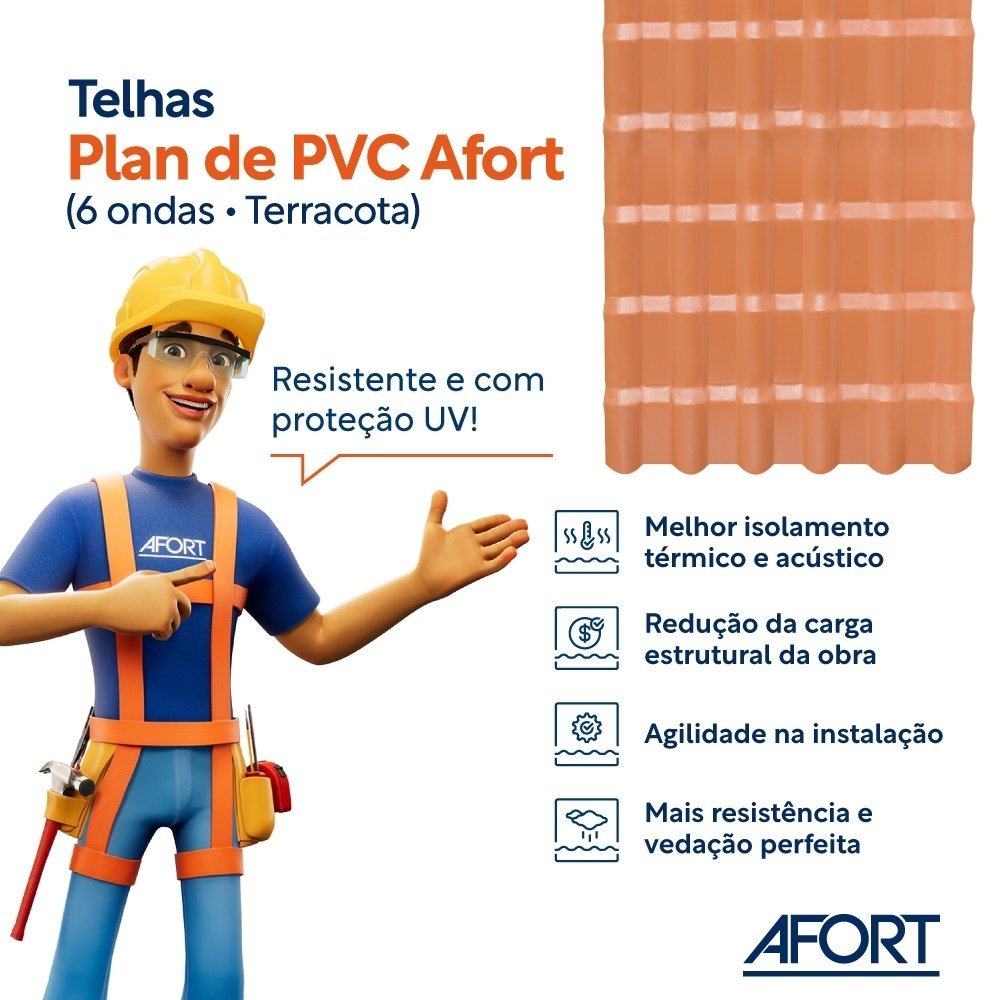 Kit com 15 Telhas PVC Plan Afort Terracota 2,42x0,88m 6 Ondas
