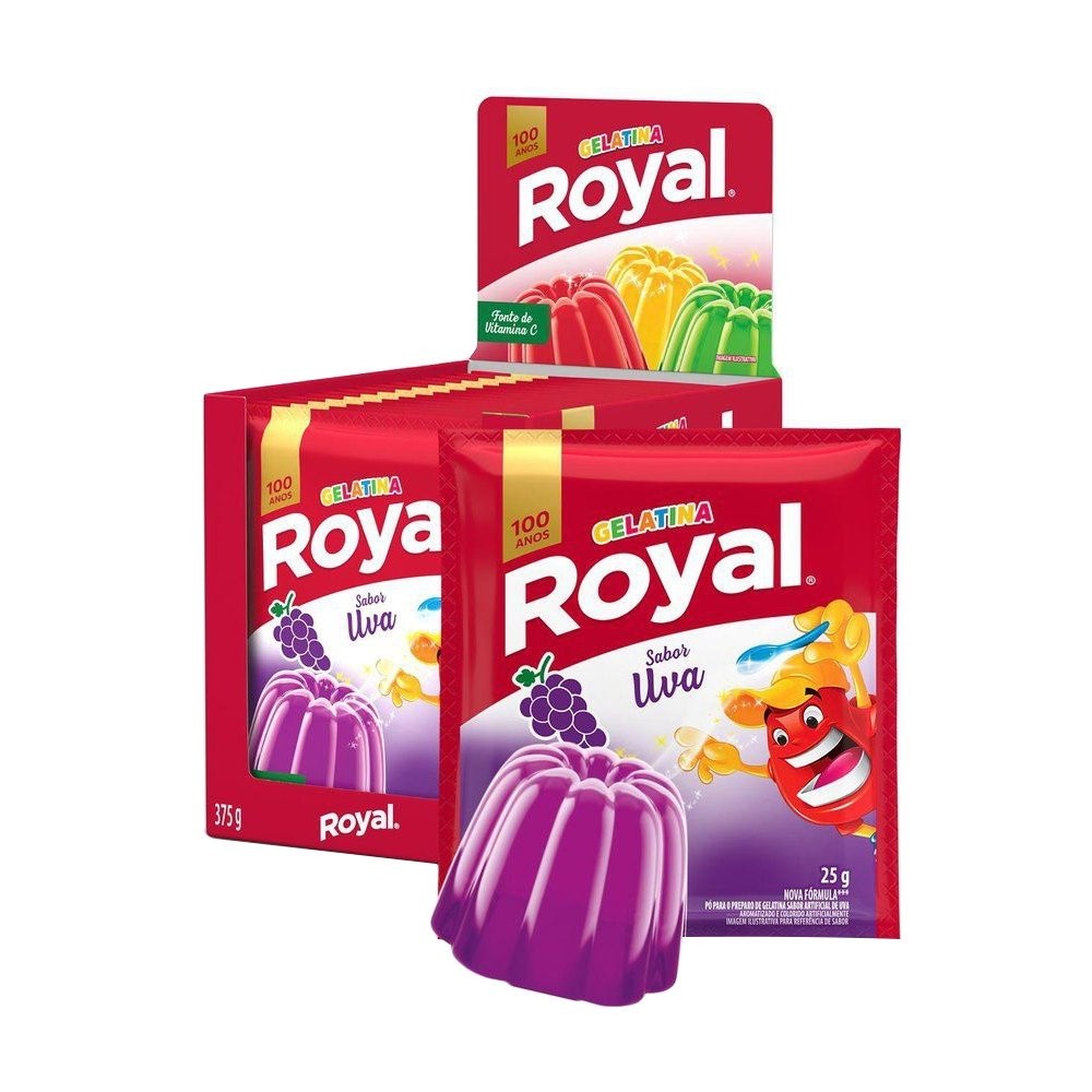 Gelatina em Pó Royal Uva 25g Display com 15 Unidades