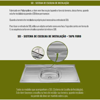 Pia Inox Ghel Plus 1800x560x110mm Cuba Central N2 Escorredor Concretada sem Válvula