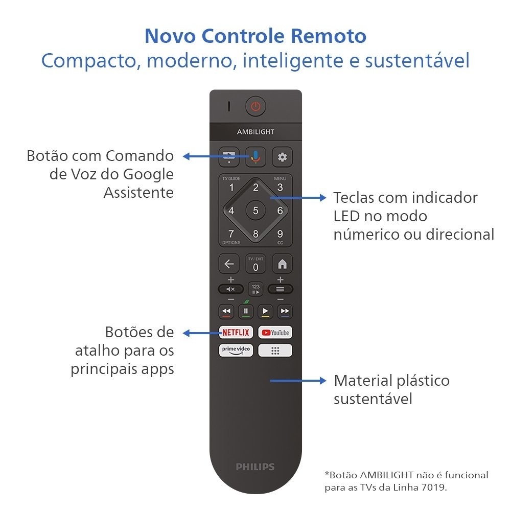 Smart TV LCD LED 50" Philips 50PUG7019/78 4K UHD | Quad Core, com Wi-Fi, Bluetooth, 3 HDMI, 2 USB