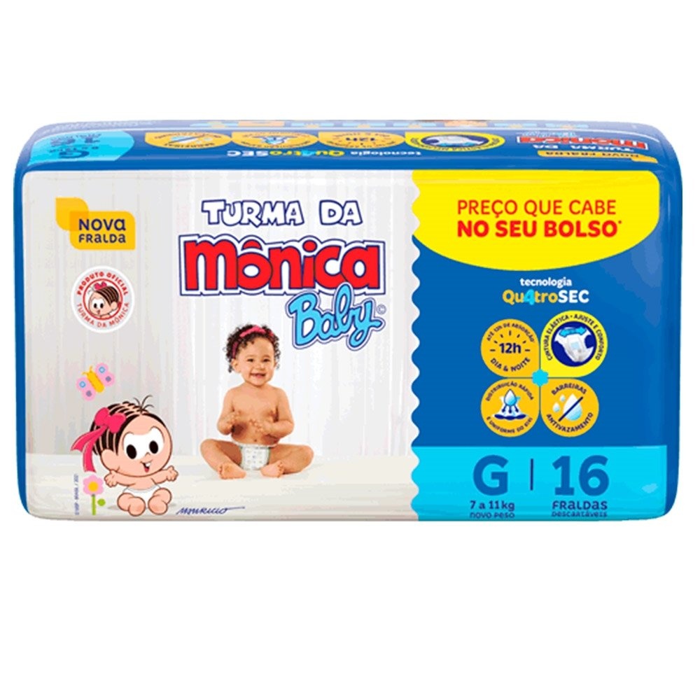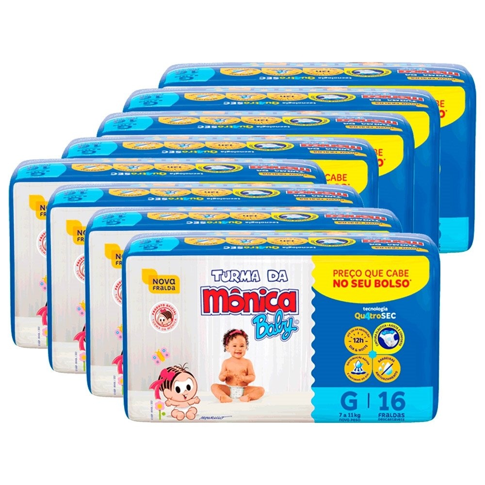 Fralda Descartável Turma da Mônica Jumbinho Tamanho G - 8 Pacotes com 16 Fraldas - Total 128 Tiras