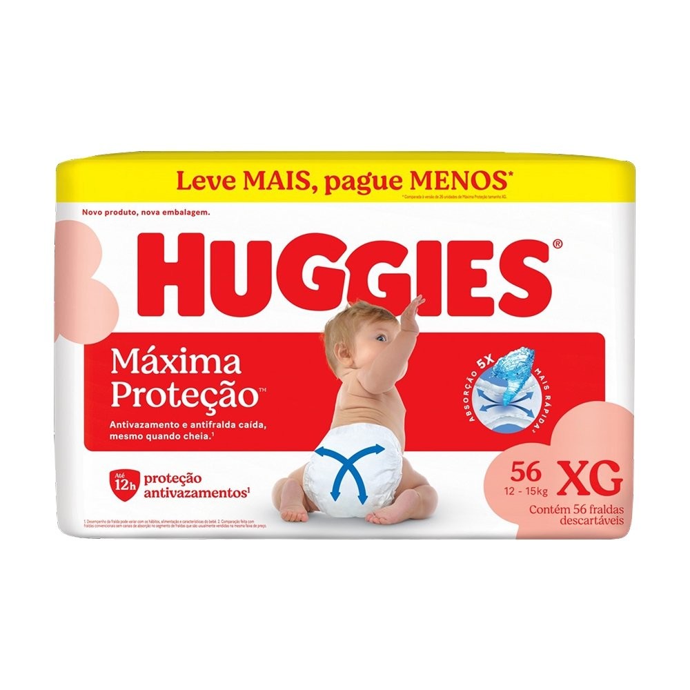 Fralda Descartável Huggies Máxima Proteção XG - 3 Pacotes com 56 Fraldas - Total de 168 Tiras