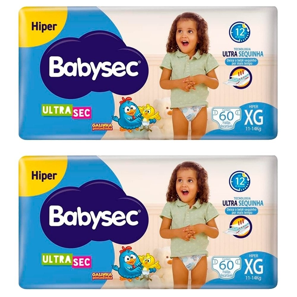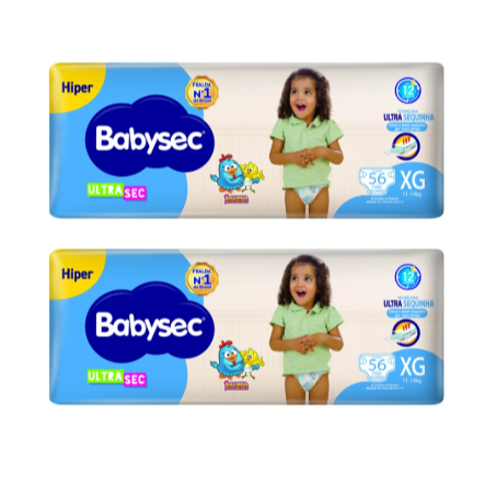 Fralda Descártavel Babysec Ultra Hiper XG - 2 Pacotes com 56 Fraldas - Total 112 Tiras