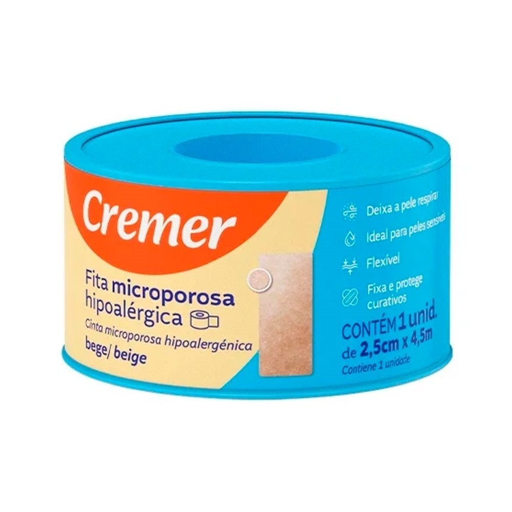 Fita Microporosa Cremer Bege 2,5cmx4,5m - Embalagem com 12 Unidades