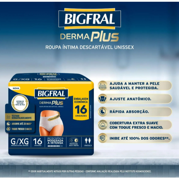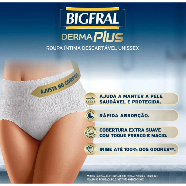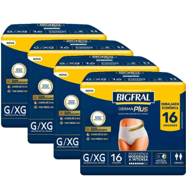 Fralda Descartável Adulto Bigfral Roupa Íntima Derma Plus Tamanho G/XG - 4 Pacotes com 24 Fraldas - Total 96 Tiras