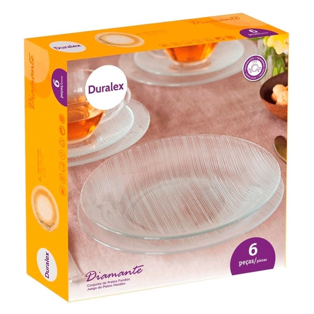 Conjunto de Pratos Fundos Duralex Diamante 6 Peças