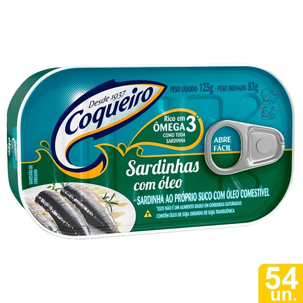 Sardinha Coqueiro com Óleo 125g - Embalagem com 54 Unidades
