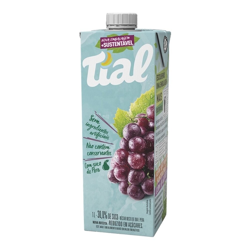 Suco Néctar Tial Uva e Pera 1 Litro - Embalagem com 12 Unidades