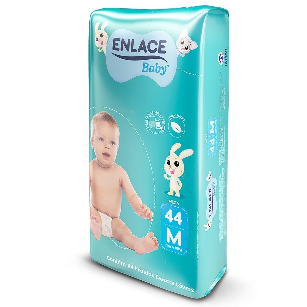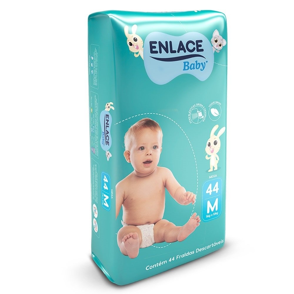 Fralda Descartável Enlace Baby Mega Tamanho M - 6 Pacotes com 44 Fraldas - Total 264 Tiras