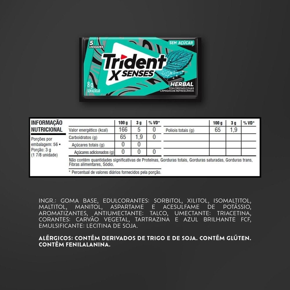 Chiclete Trident XSenses Herbal Sem Açúcar 8g - Caixa com 21 Unidades