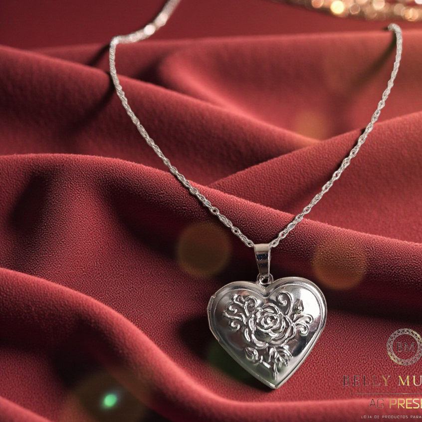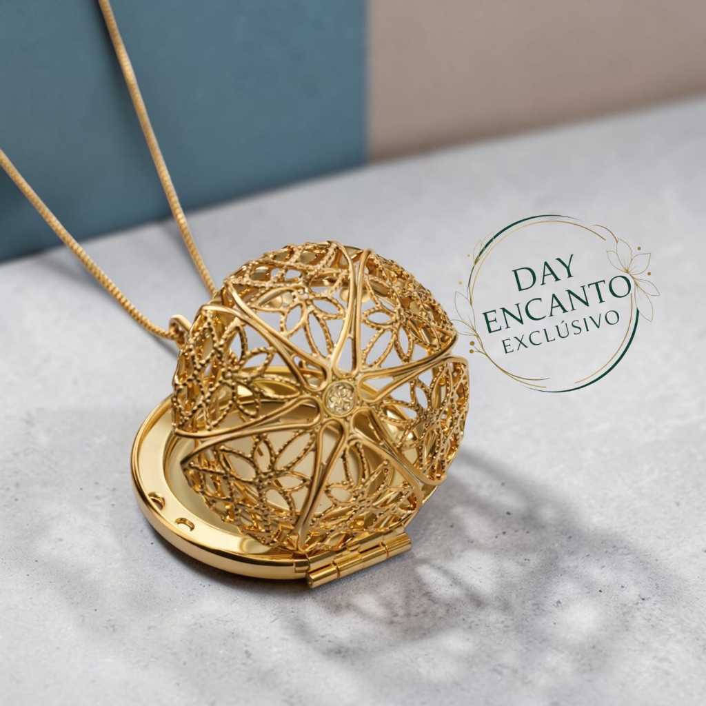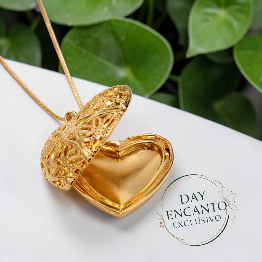 Colar Relicário Coração Vazado Porta Foto Folheado a Ouro 18k