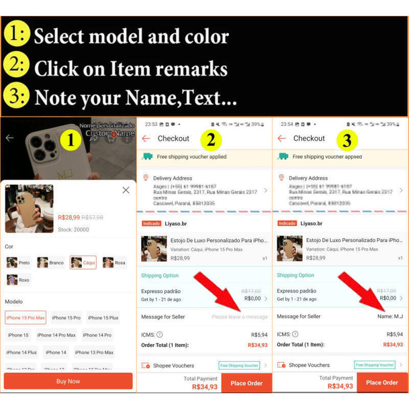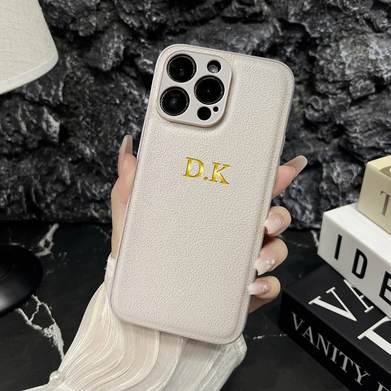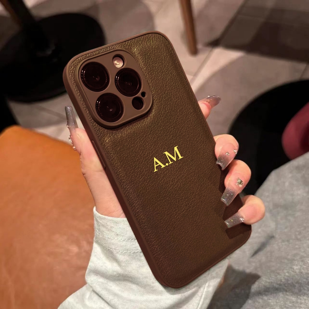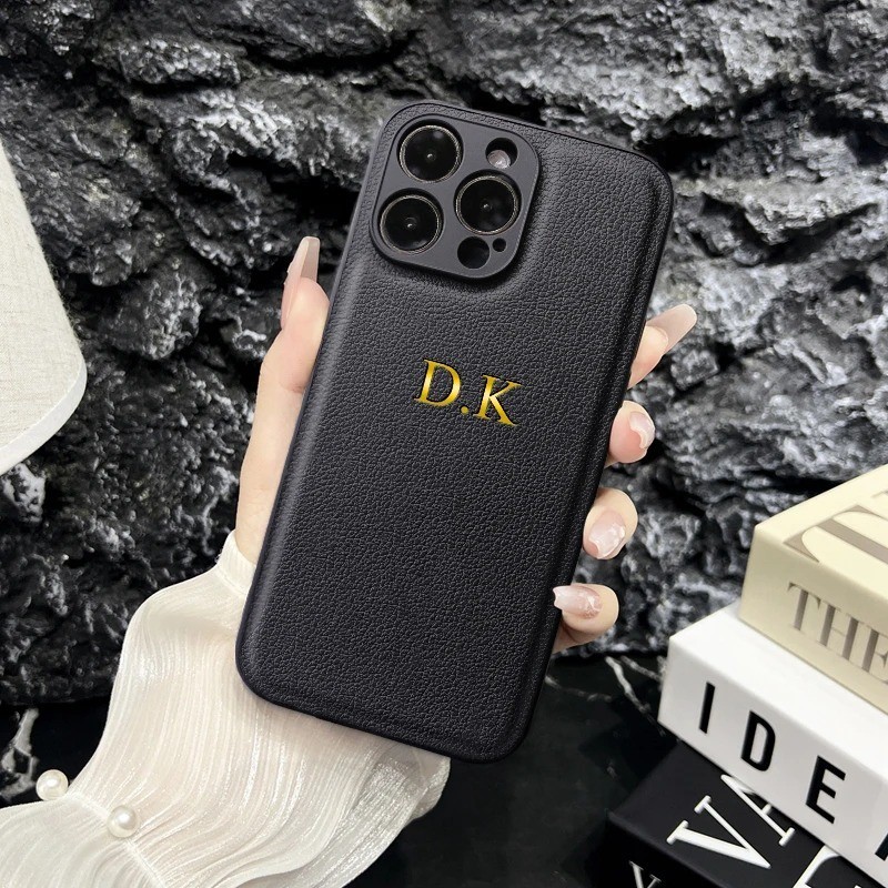 Capa De Couro Com Letras De Nome De Iniciais Personalizadas Para iPhone Air 17 16 15 14 13 12 11 Pro Max