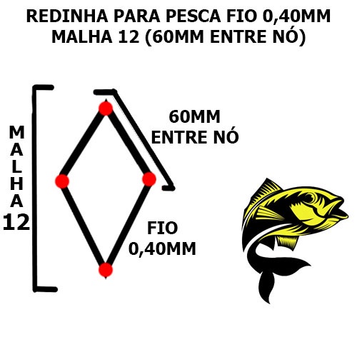 REDINHA PARA PESCA FIO 0,40MM MALHA 12(60MM)30 METROS 24M.ALT