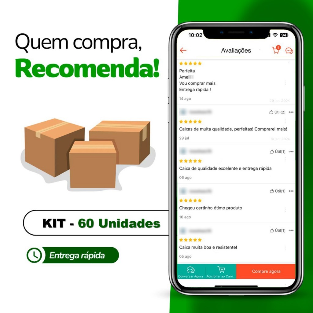 Kit 60 Caixas de Papelão Resistentes - Escolha sua Medidas Atacado Multiuso Ecommerce