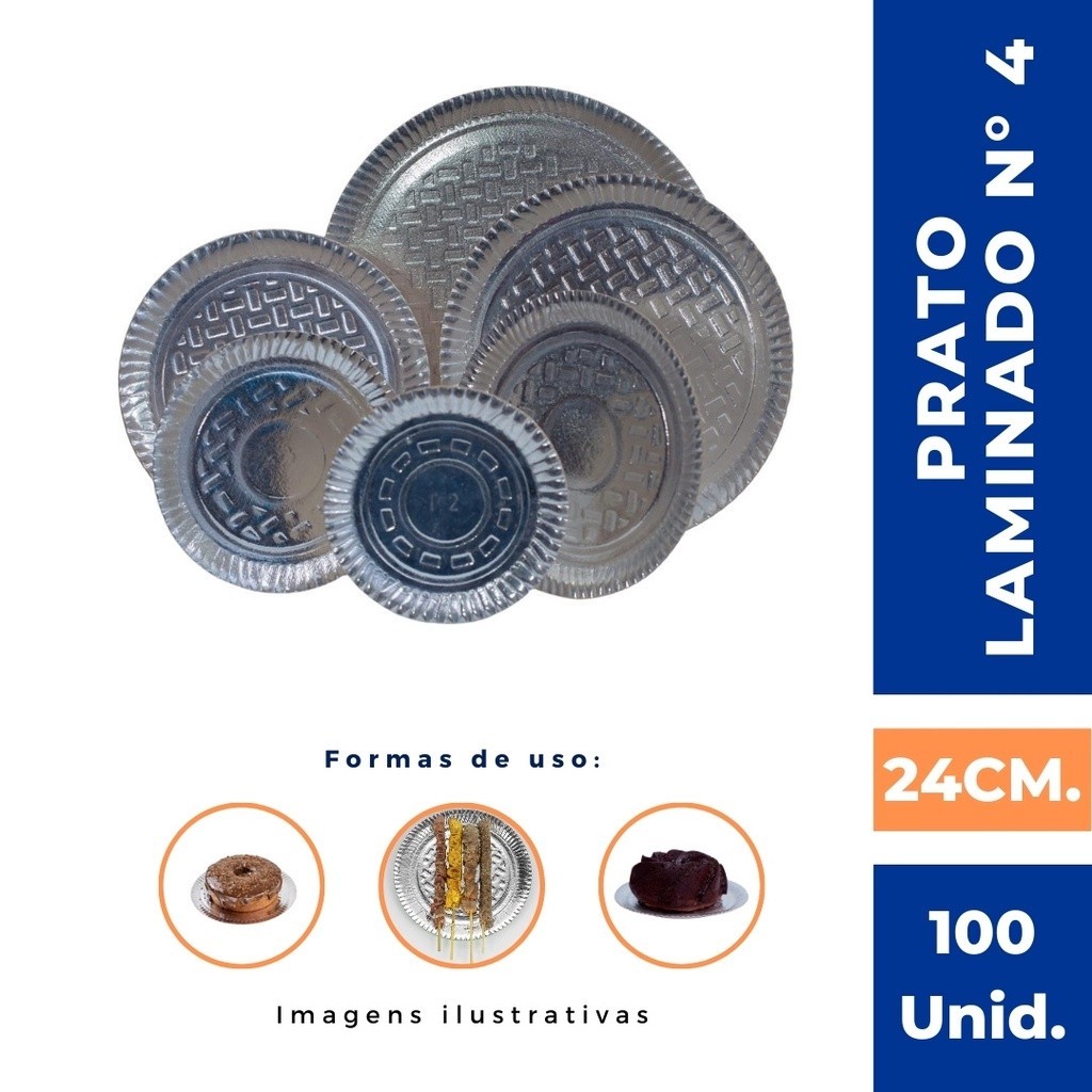 Prato N. 4 P/ BOLOS DOCES SALGADOS Laminado Adesivado (24cm.) Com 100 Un.