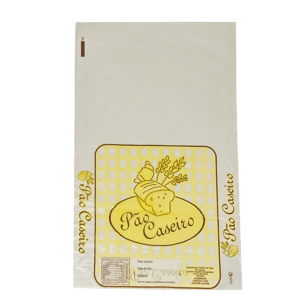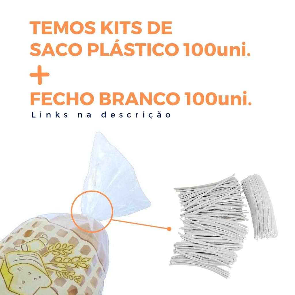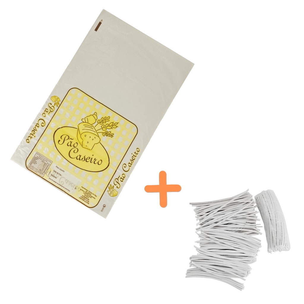 Saco Plástico P/ Pão Caseiro 100 Un + Fecho Plástico 100un.