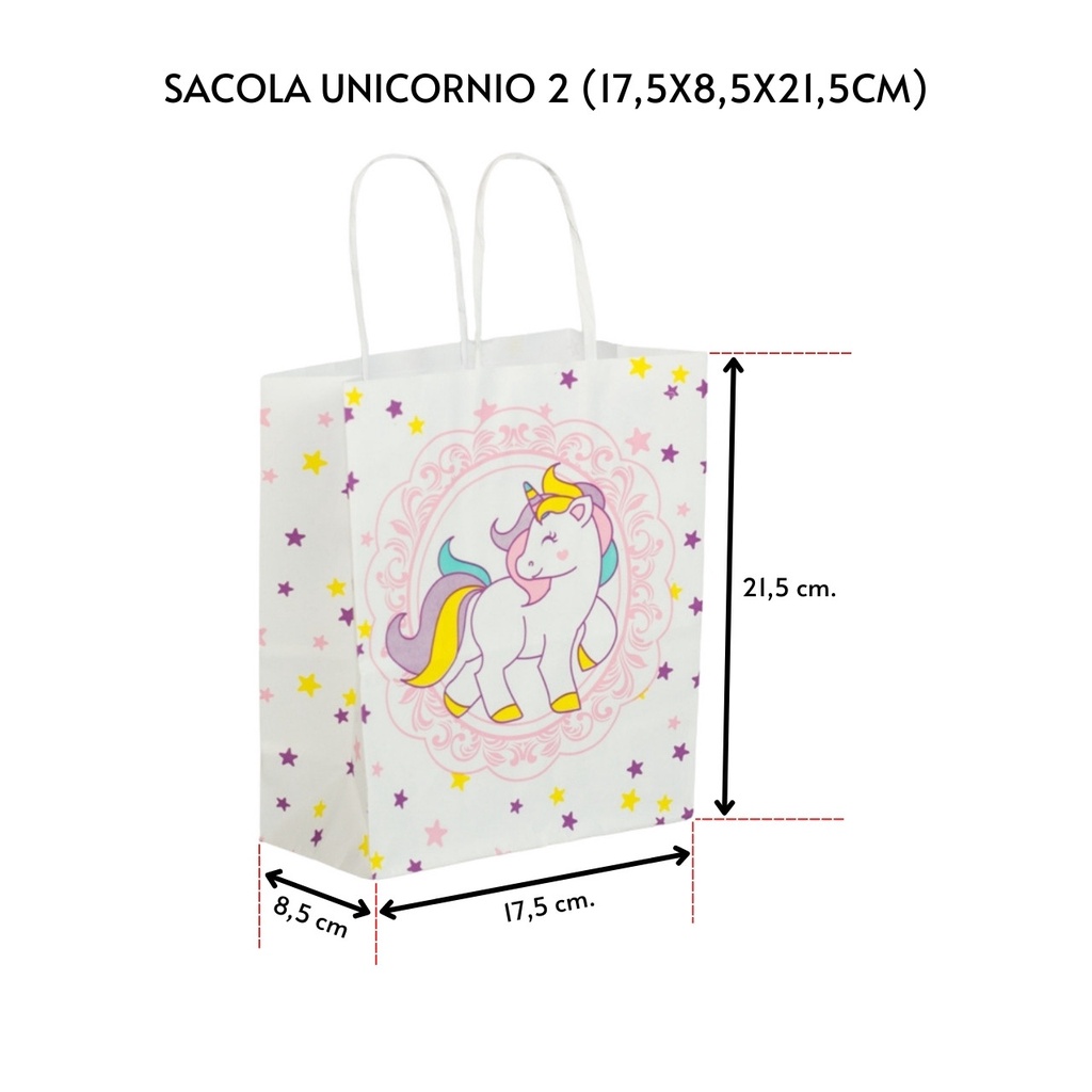 Kit 30 Sacolas Kraft Unicórnio 17,5x8,0x21,5cm Para Presente e Lembrancinha
