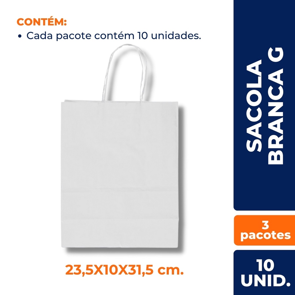 Kit Sacola Branca Tamanho G – 23,5x10x31,5 cm