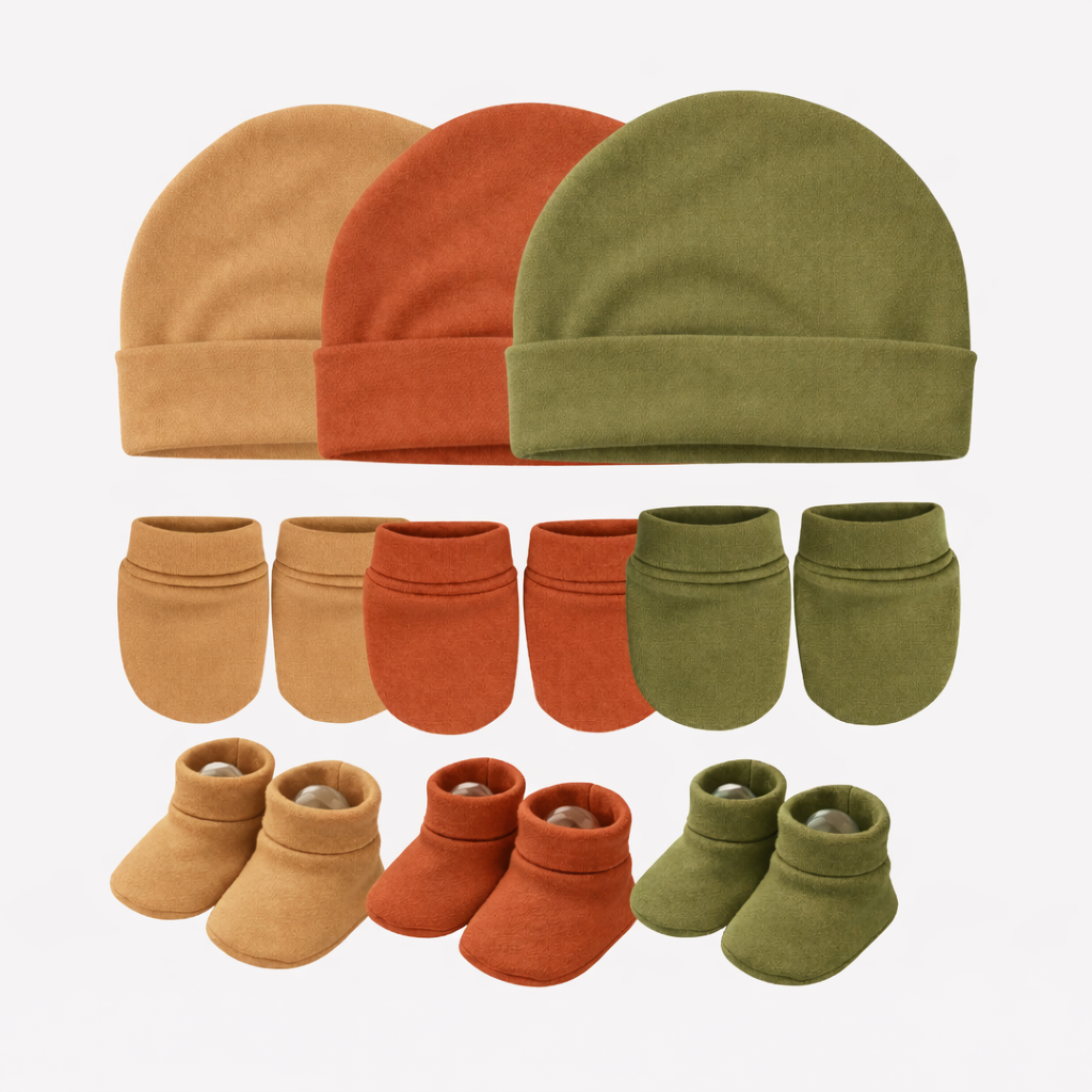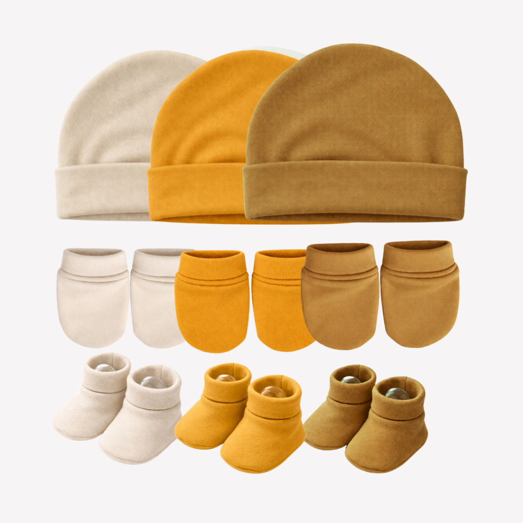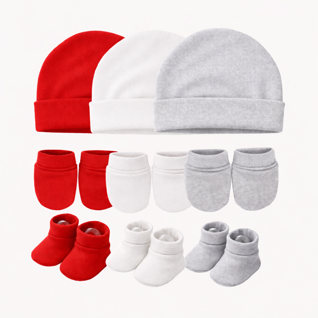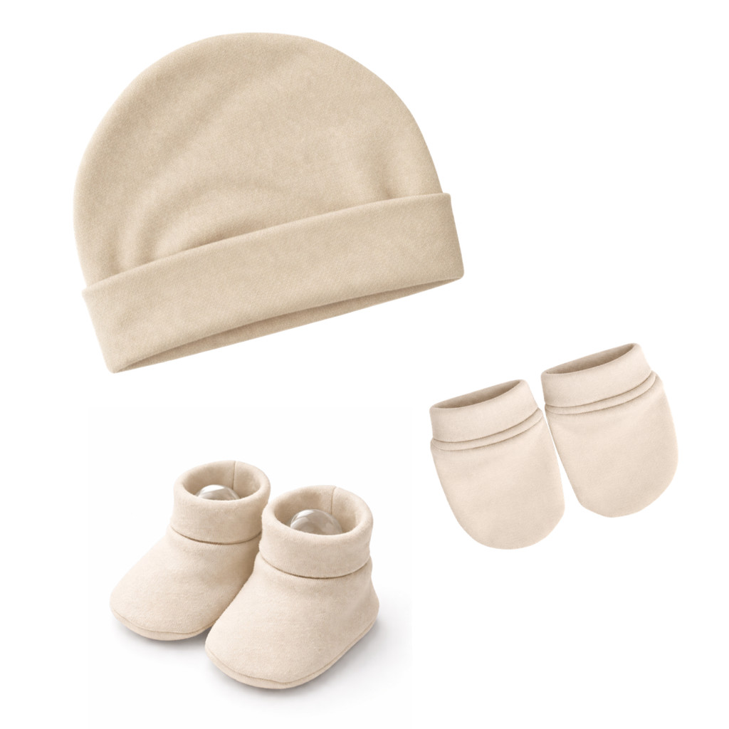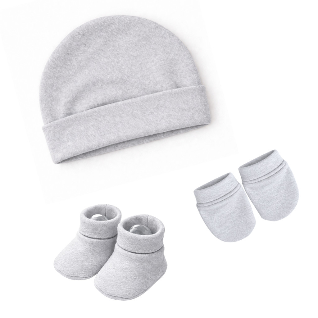 Touca de bebê RN, kit com 3 toucas e 3 pares de luvas 3 Sapatinhos, maternidade enxoval baby, 100% Algodão.