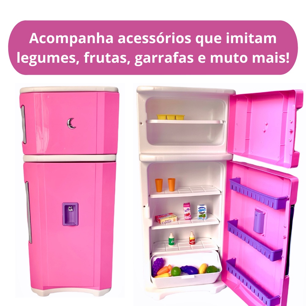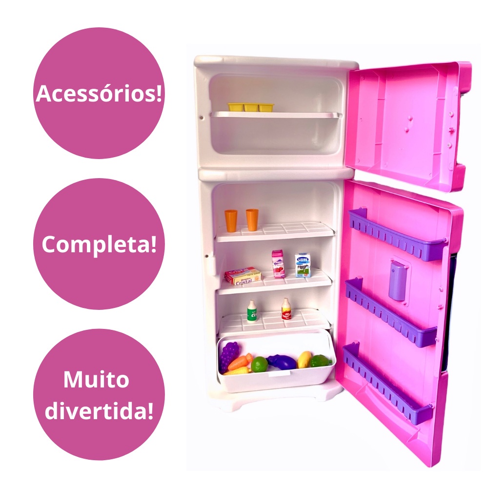 Mini Geladeira Infantil Cozinha Criança Grande Menina Rosa