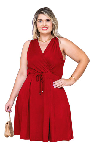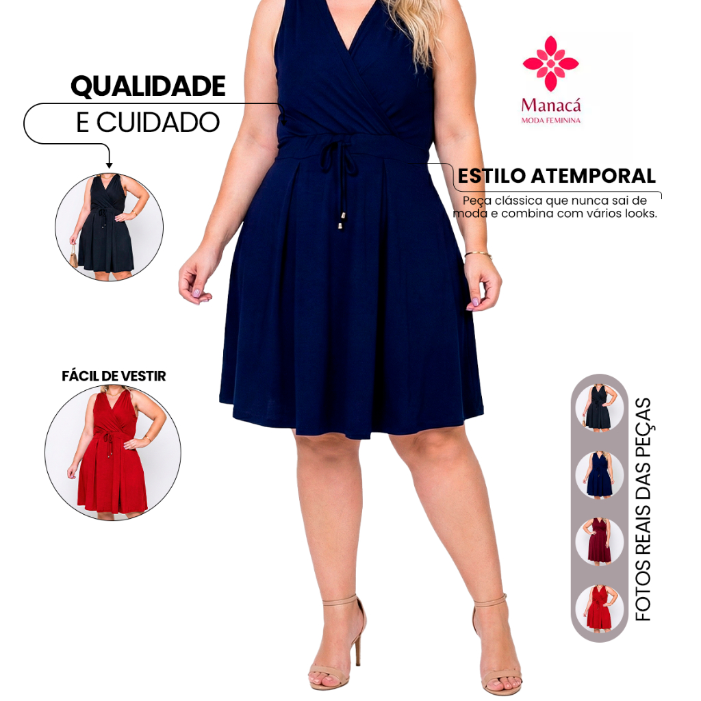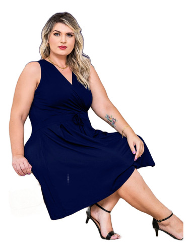 Vestido Plus Size Transpassado Decote V Mid Sem Manga Alça Larga