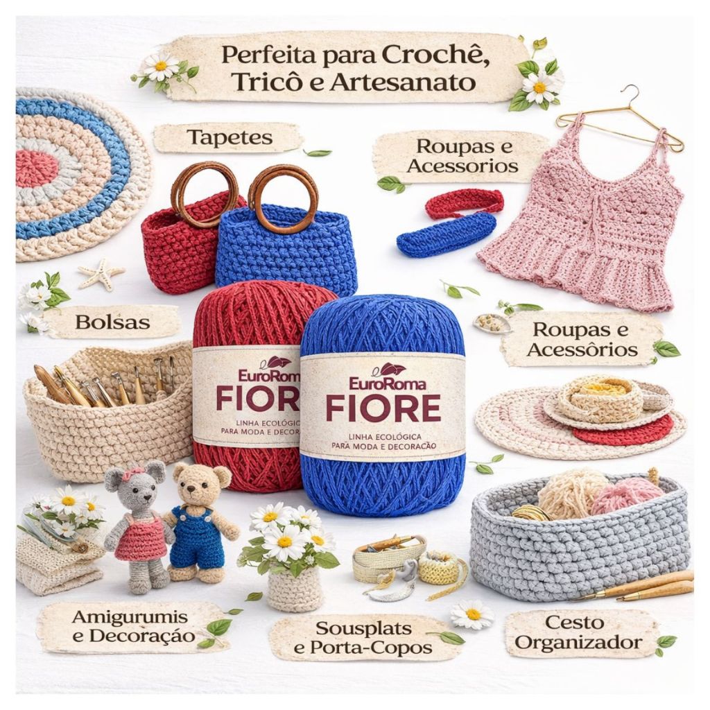 Linha Fiore EuroRoma 8/4 150g 500m Barbante Colorido Sustentável Crochê Tricô Artesanato Premium